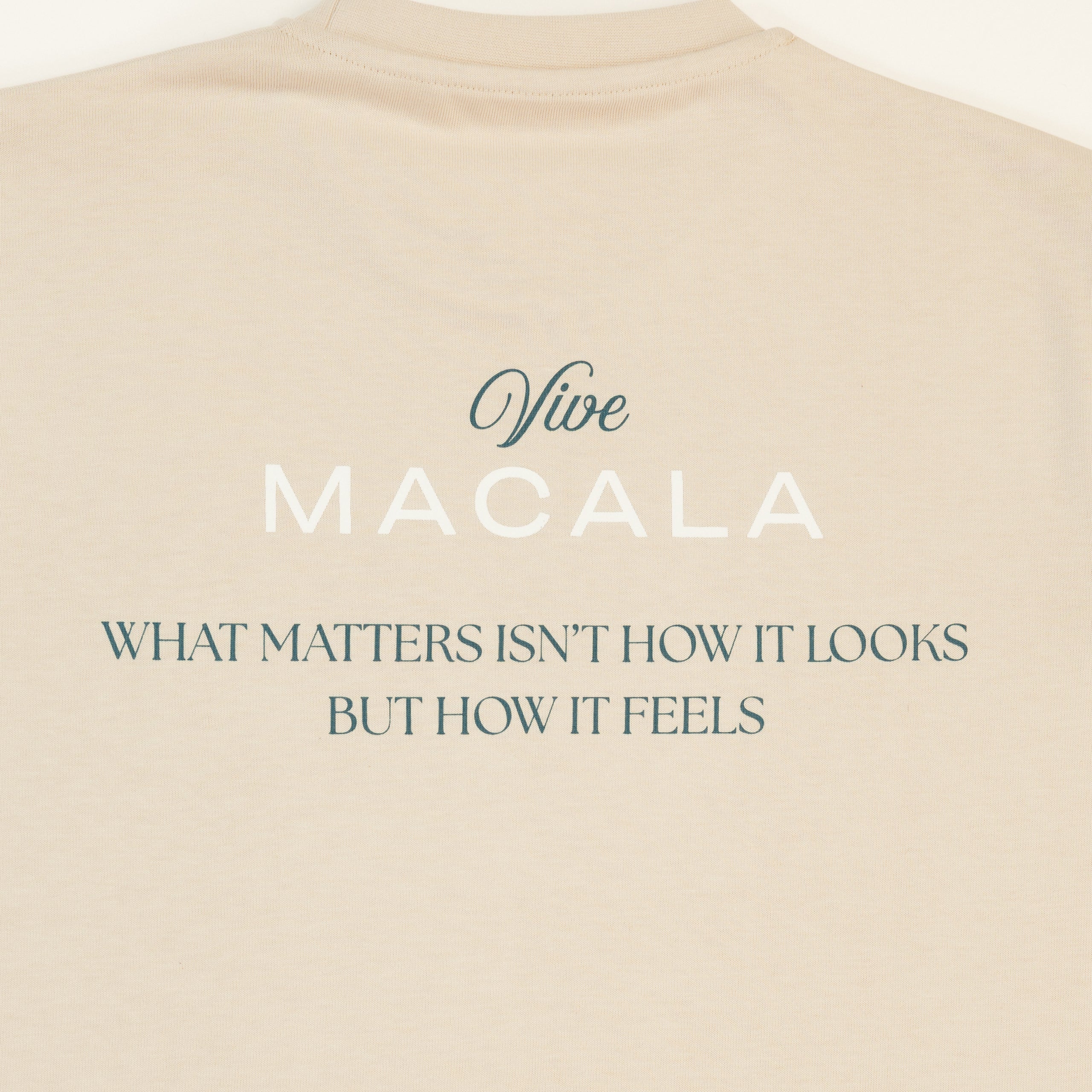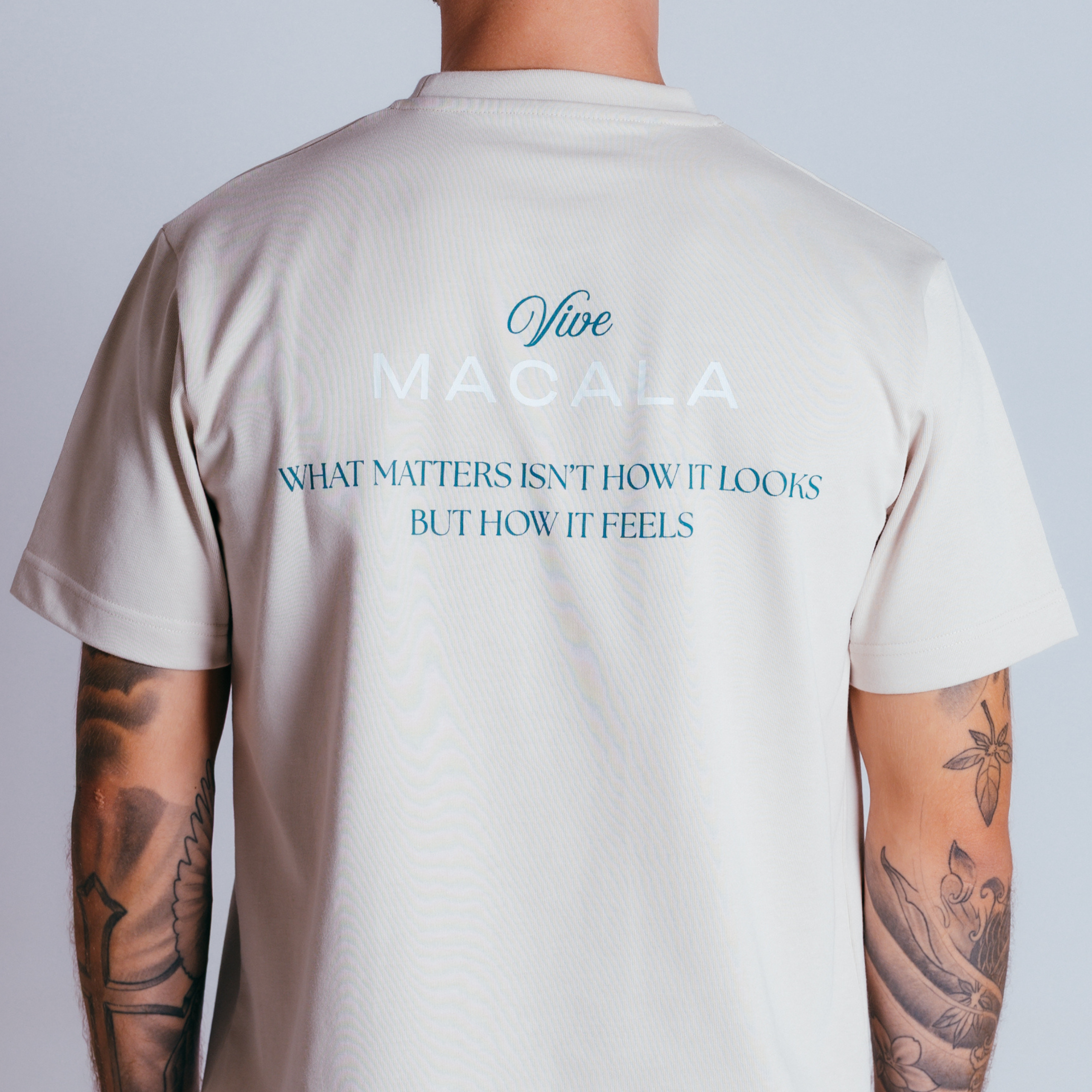 Logo minimalista de Macala y una frase que lo cambia todo: “WHAT MATTERS ISN’T HOW IT LOOKS, BUT HOW IT FEELS.”