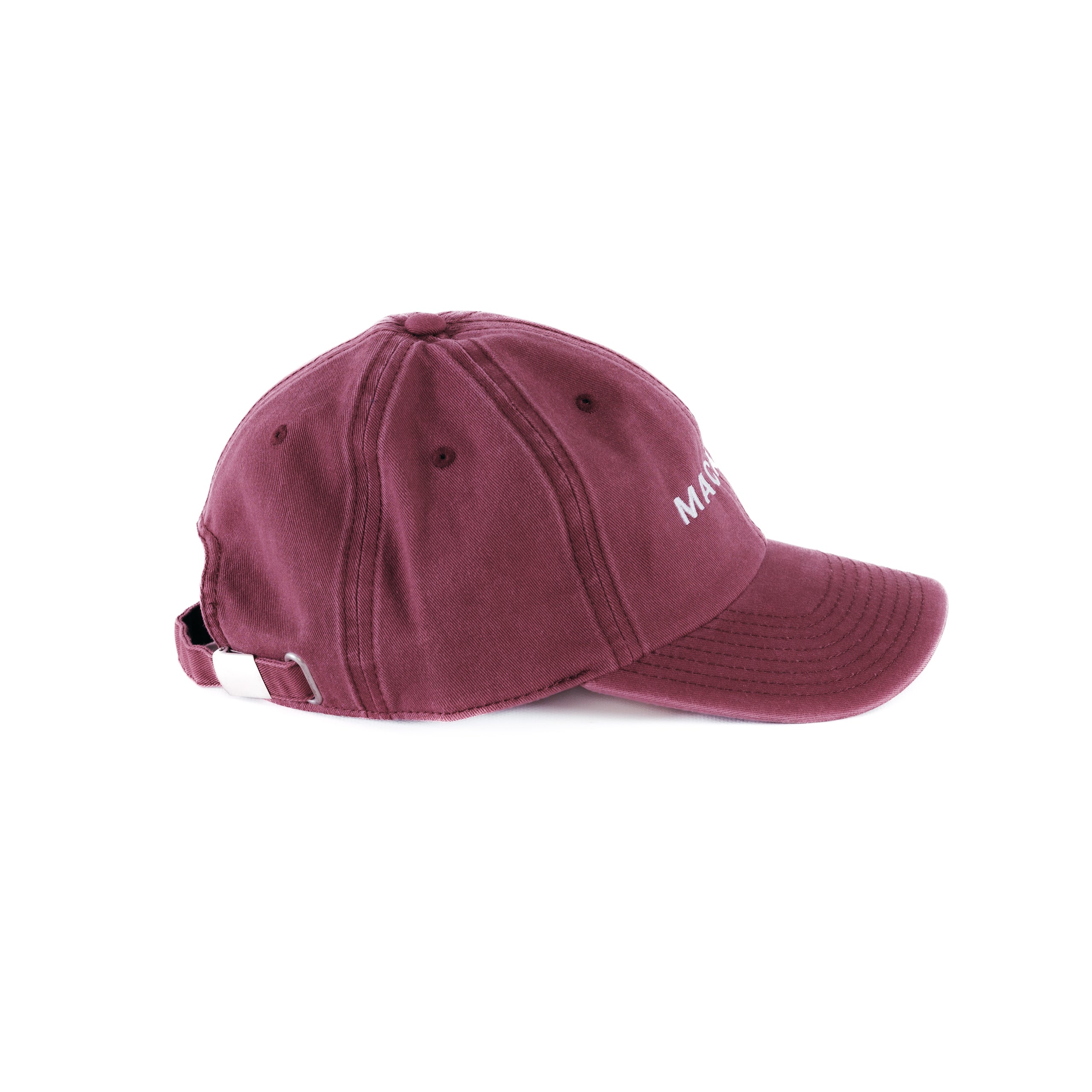 Burdeos con alma. La gorra Macala burdeos es distinta desde el primer vistazo: su tono profundo evoca fuerza y raíces. Su confección con materiales reciclados habla de una forma consciente de hacer las cosas.