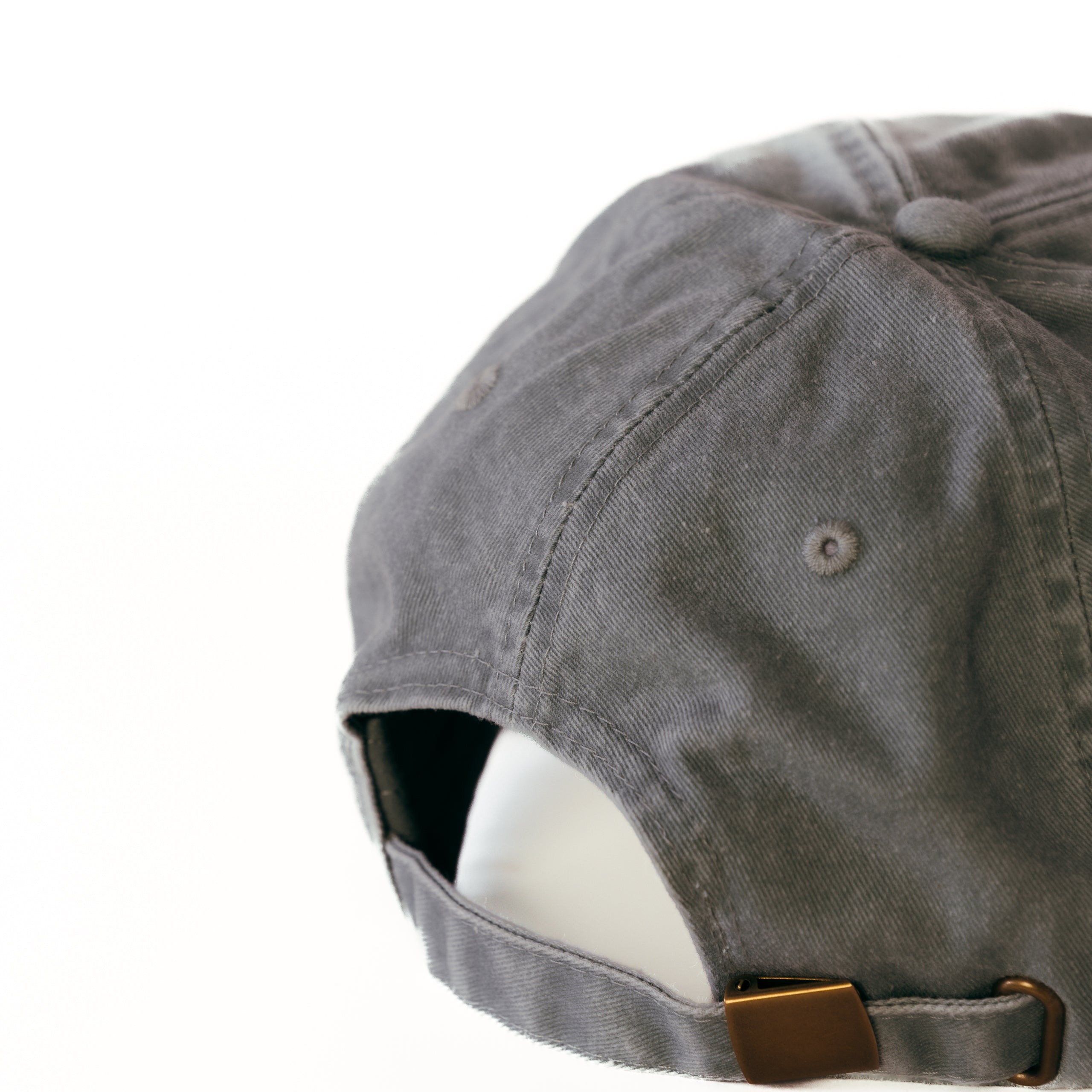 Fabricada en algodón peinado lavado, con visera curvada y cierre efecto latón, es una pieza pensada para durar.