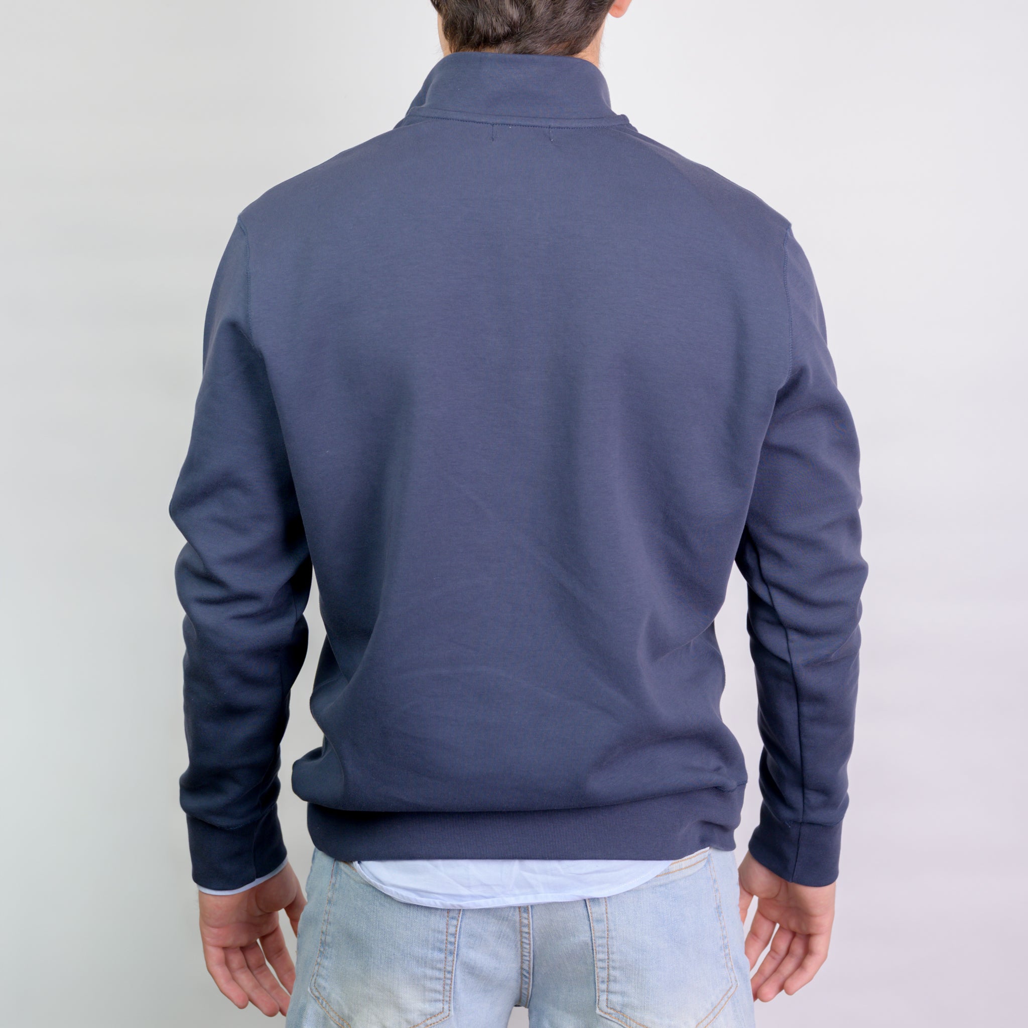 Inspirado en la elegancia atemporal, el INTERLOCK MARINO de MACALA redefine lo esencial. Su diseño de cuello semicisne con botones de nácar reemplaza la clásica cremallera, aportando una versatilidad que lo adapta tanto a looks relajados como a combinaciones más formales.