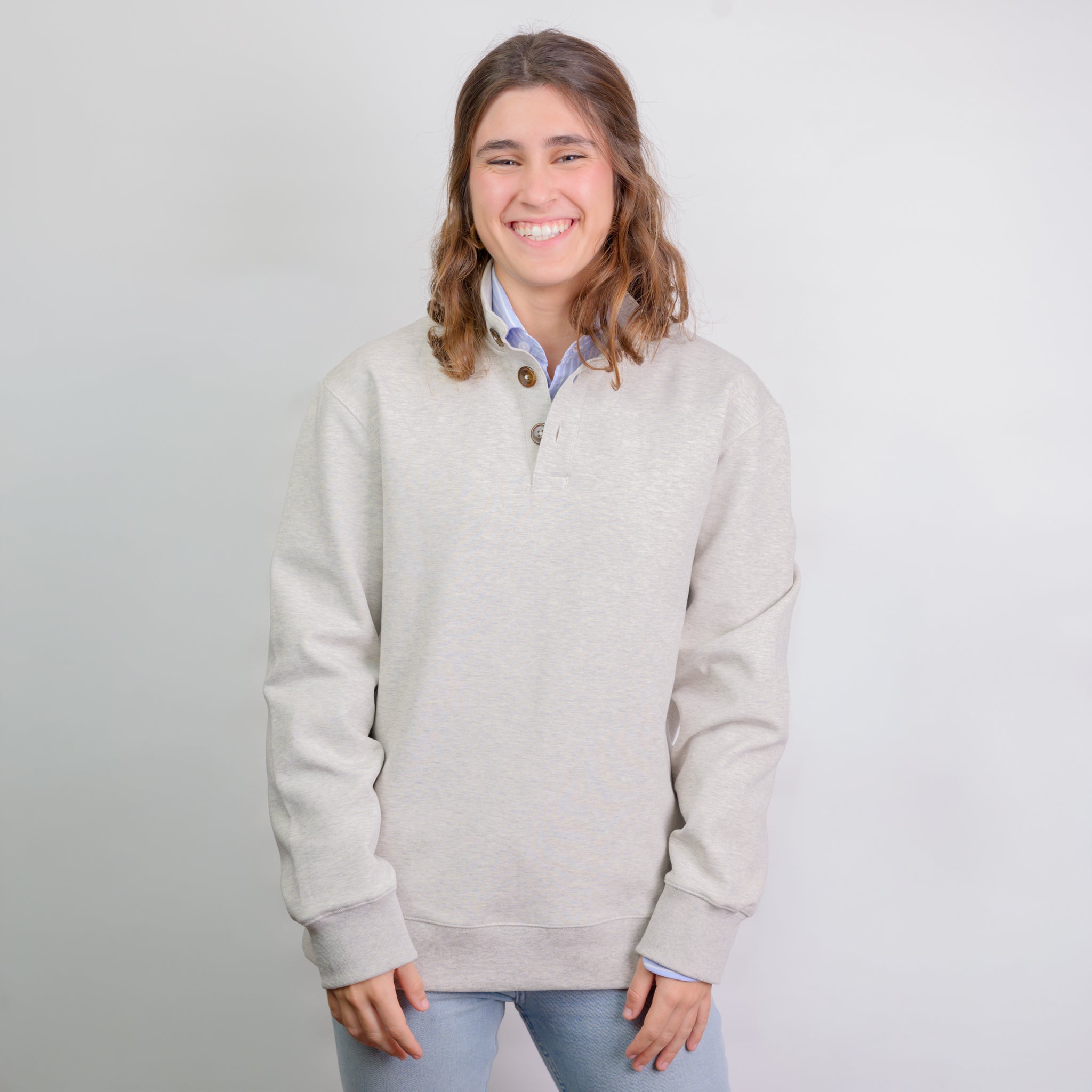 El INTERLOCK JASPEADO de MACALA está pensado para mujeres que encuentran en lo sencillo su mejor expresión. Con un diseño limpio y atemporal, esta prenda combina la estructura de un cuello semicisne con el brillo natural de botones de nácar, un detalle sutil que eleva cualquier conjunto.
