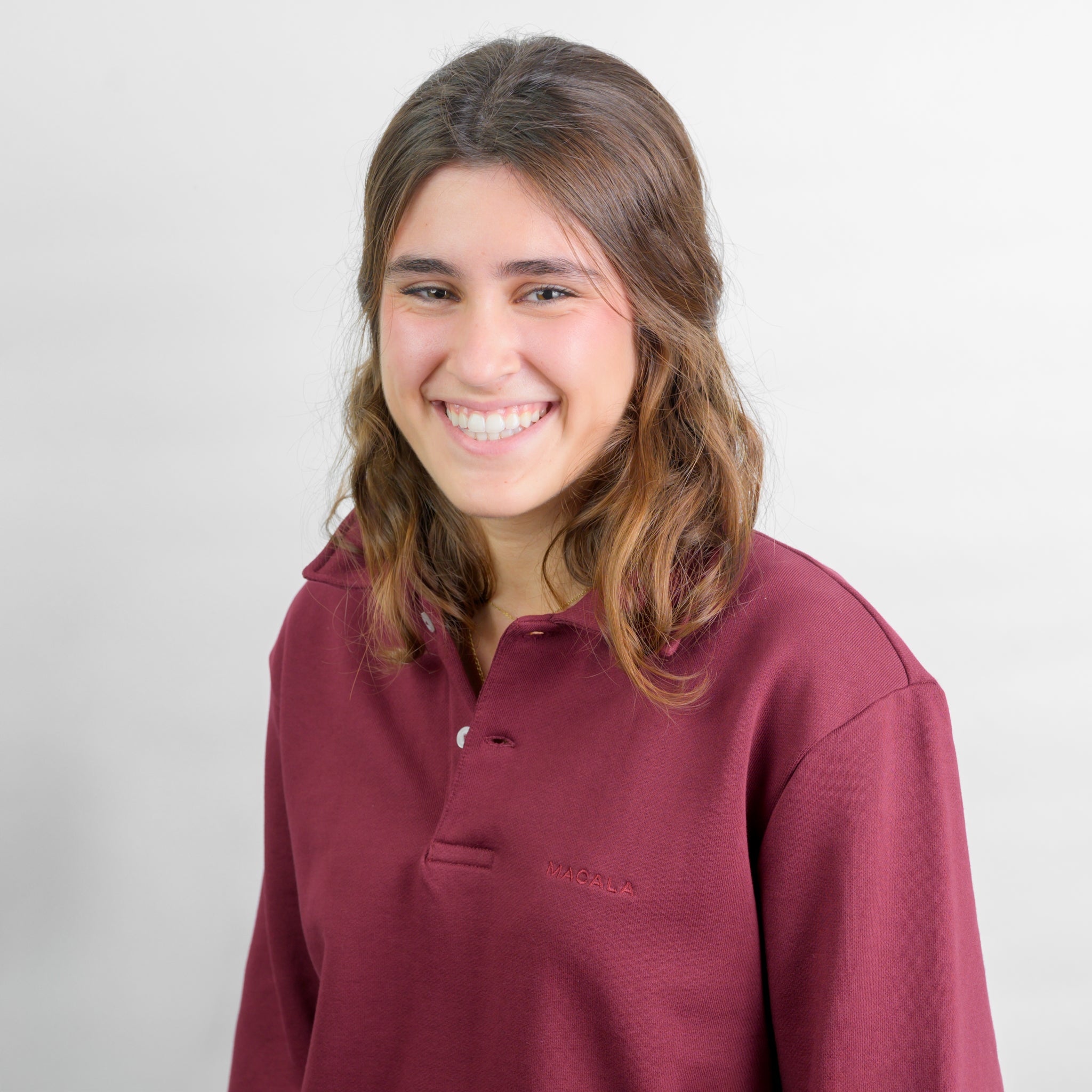 El POLO FELPA BURDEOS de MACALA combina la estructura pulida de un polo con la suavidad envolvente de una sudadera. Una prenda versátil, pensada para mujeres que buscan comodidad sin renunciar a una estética cuidada.